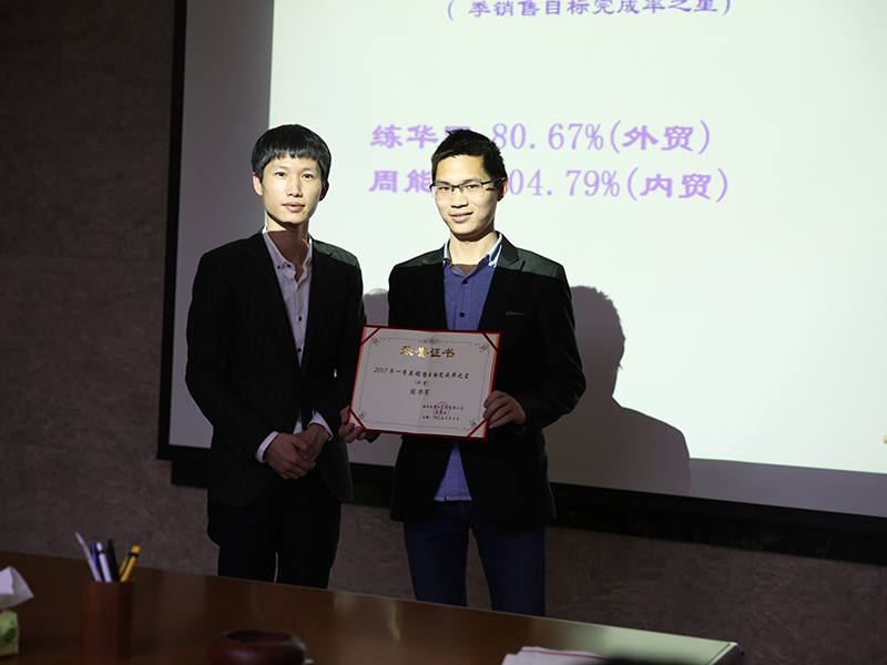第一季度我們有收獲,有教訓,有懲罰,有激勵。外貿(mào)團隊的破局重生是大家有目共睹的,內(nèi)貿(mào)團隊一直以來的領先優(yōu)勢是所有團隊追趕的目標,會中各位同事積極發(fā)言并無私分享相互間的經(jīng)驗心得,并定下以PK的形式挑戰(zhàn)自我。